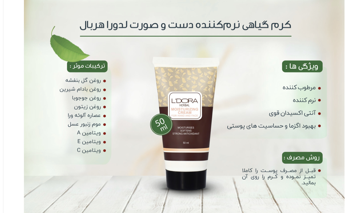 کرم مرطوب کننده دست و صورت گیاهی لدورا